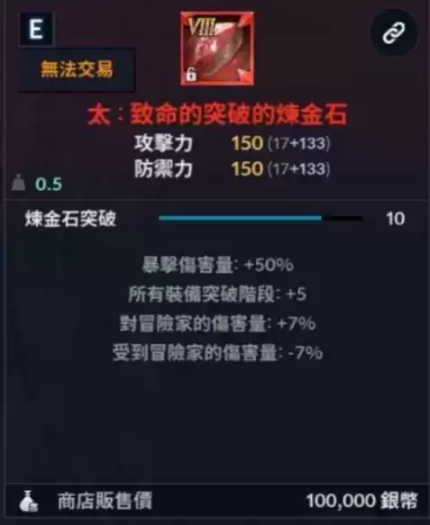但是前期因为开荒,很多玩家并没有品质高的宝石,所以只能先拿一些适用的来过渡一下,这里推荐使用“致命的突破的炼金石”。