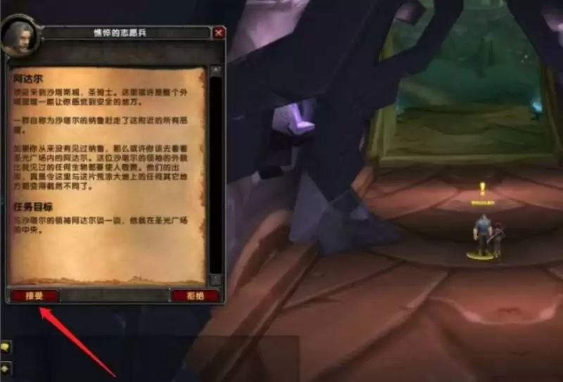 2、在NPC憔悴的志愿兵这里选择接受阿达尔任务。