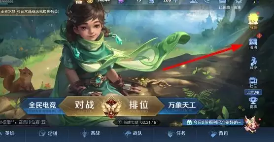 1、进入游戏以后,在大厅页面点击右上角的【活动】