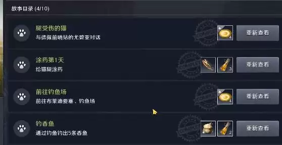 1、首先第一天给猫腿上药,并完成钓鱼任务。(需要5条香鱼)
