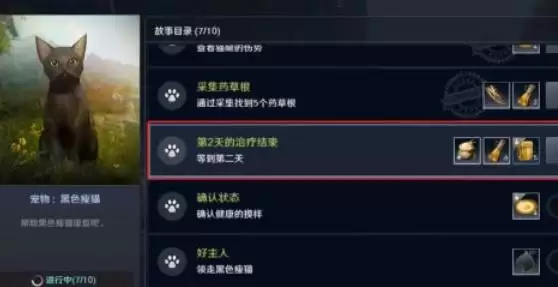 3、等到第三天,确认小猫伤势痊愈了即可获得黑色瘦猫宠物。