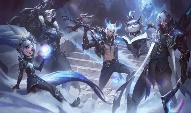 1、这套皮肤采用银蓝黑的配色,黑色代表着神秘,银色蓝色代表着高贵