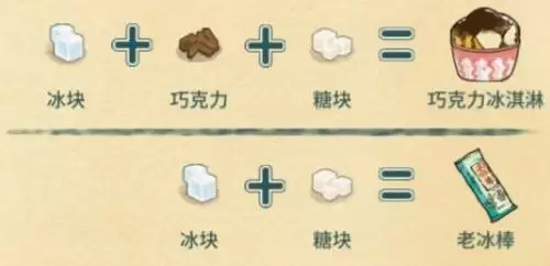 巧克力冰淇淋:冰块+巧克力+糖块;