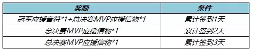 1.活动期间总共可以获得冠军应援音符*1+总决赛MVP应援信物*3
