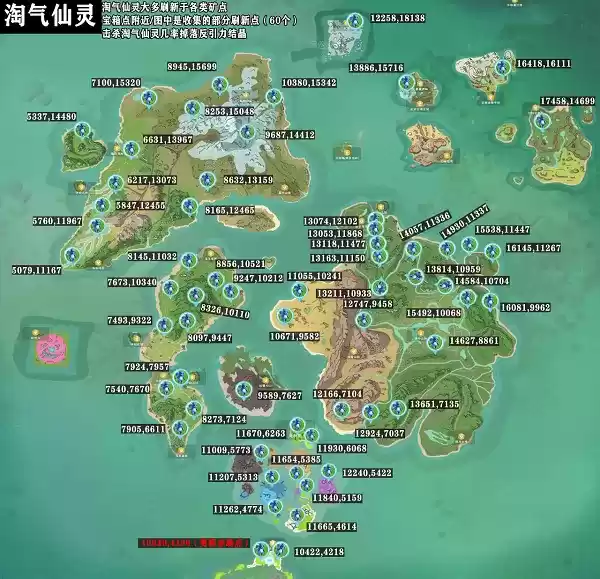 4、不知道最新的淘气仙灵必刷位置,可以参考上图,这是目前最新的点位,希望可以帮到大家。