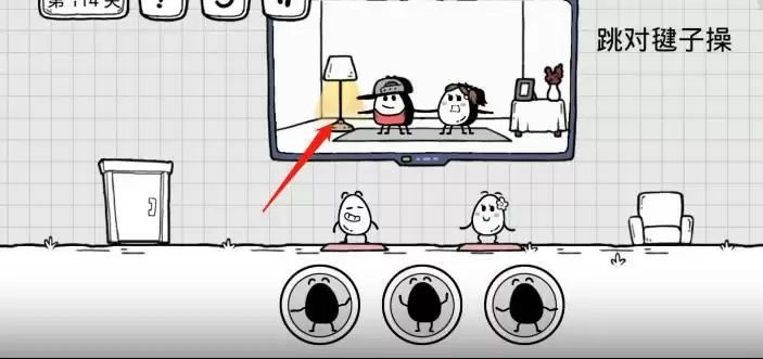 3、前两个都没问题,第三个的时候需要我们将电视里的灯移到粉色衣服茶叶蛋的旁边