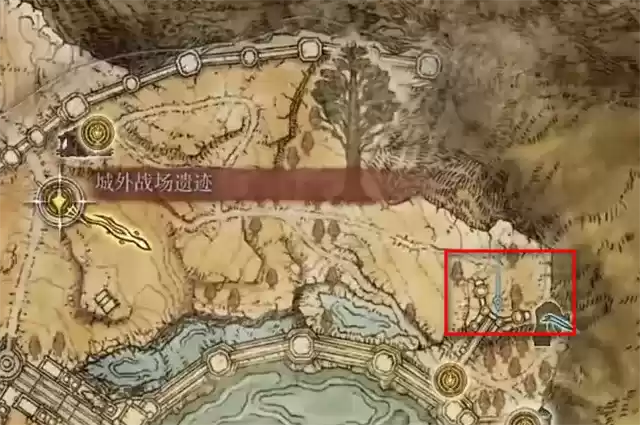 答:大龙爪这个武器的位置在【城外战场遗迹】的东面;