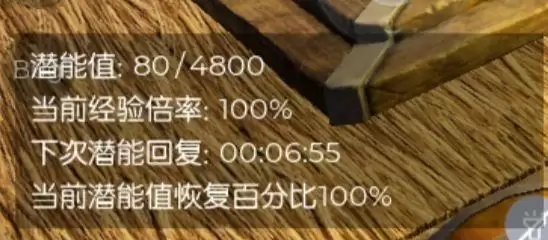 如图所示如果你能理解那再好不过,如果你不能理解你可以把它当做体力值,当你获得经验时会消耗体力值,当你的体力值为0时则不会获得经验,当你的潜力值在2400以上时会获得双倍经验加成,潜能值回复比例目前没有人为干涉的方法,从0到4800满潜力需要24小时,因此从开服开始每天都存在最大等级限制,所以当你还在骑猪的时候如果看到或听说别人都在骑老虎训火龙什么的等超前进度行为,都是假的,请勿相信,请勿上当受骗!