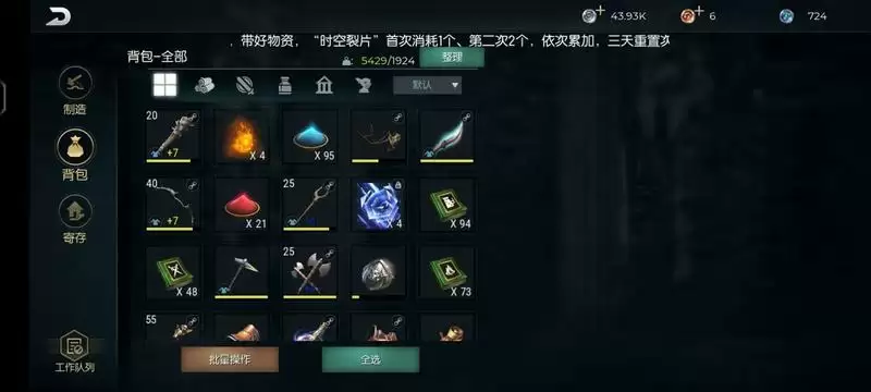 此游戏背包采用重量限制的方式,因此请勿认为数量1000比数量10沉!这种惯性思维要切记不可取!