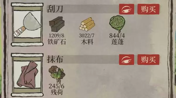 2、兑换需要玩家准备8个铁矿石、7个木料、4个莲蓬