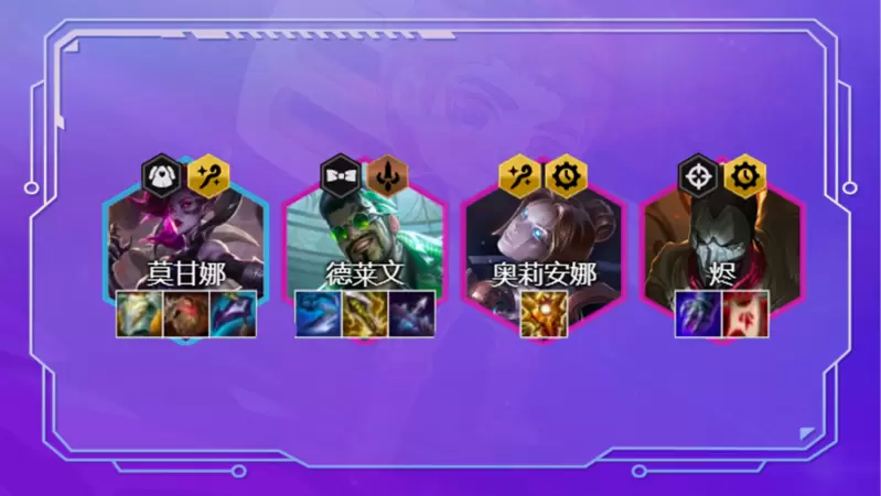 4白魔的治疗和护盾效果提升了10%,因此我们这套阵容的核心前排就是4白魔的莫甘娜。而同样因为有白魔英雄的治疗效果,因此德莱文是不需要做出回复装备的。