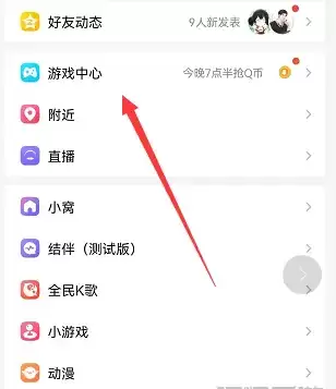 1、在QQ的动态页面,找到【游戏中心】