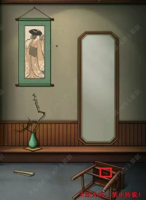 19.点击房梁上面的上绳子两次,就可以在地上捡到一块令牌。19.1