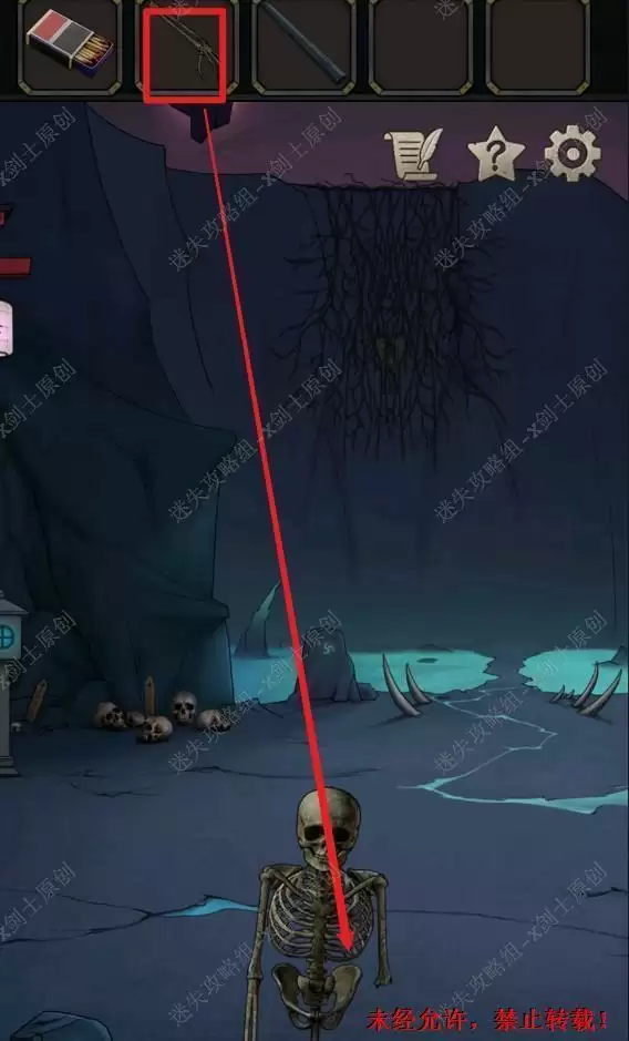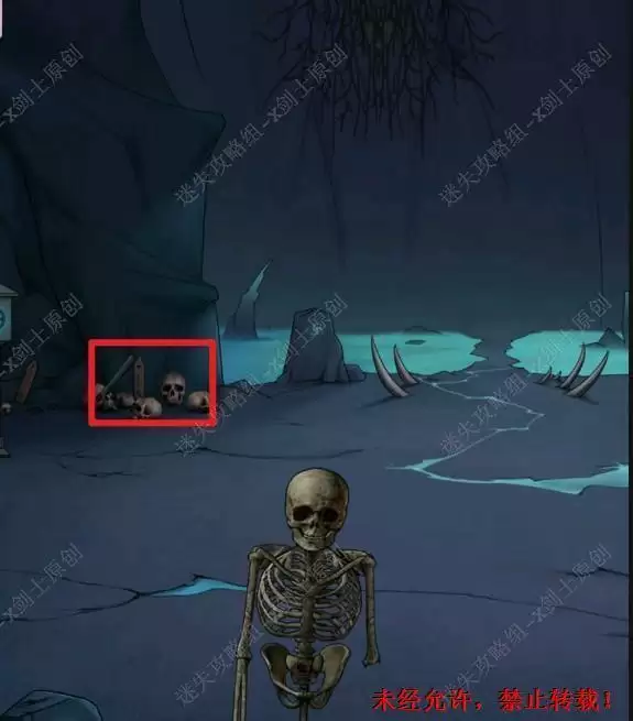 8.来到这个阴间场景之后,点击后面的骷髅堆。在骷髅堆上面可以拿到一个铁棍。8.1
