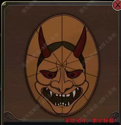 55.点击上楼,点击后面柜子上的面具,点击面具的牙齿,这个小游戏就像之前打开柜子上面的小游戏,这是我解这个面具顺序如图。55.1