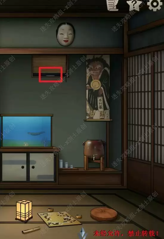 35.在柱子上面拿到剪刀,点击柜子下面的锁,这个锁就是前面木桶上面的图案,如图进行调整,可以得到鬼面虫诱饵35.1.2