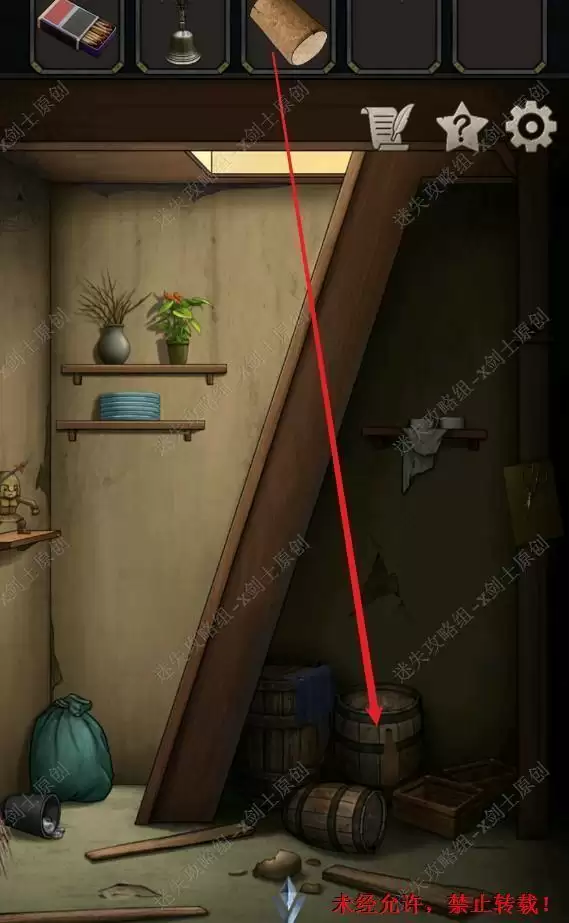 33.接着地窖打开了,点击下面的木桶使用软塞塞进去,在下面我们可以看到一个提示。33.1