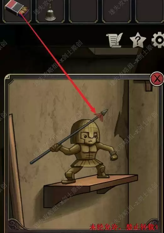 34.是用火柴点燃枪兵手上的枪,这个时候长枪就会丢出去,我们就可以来到右边的区域了。34