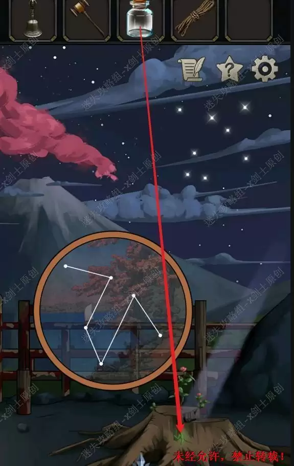 15.根据上面每一个小球球绽放的位置,打开下方梯子旁边的石灯。15.1