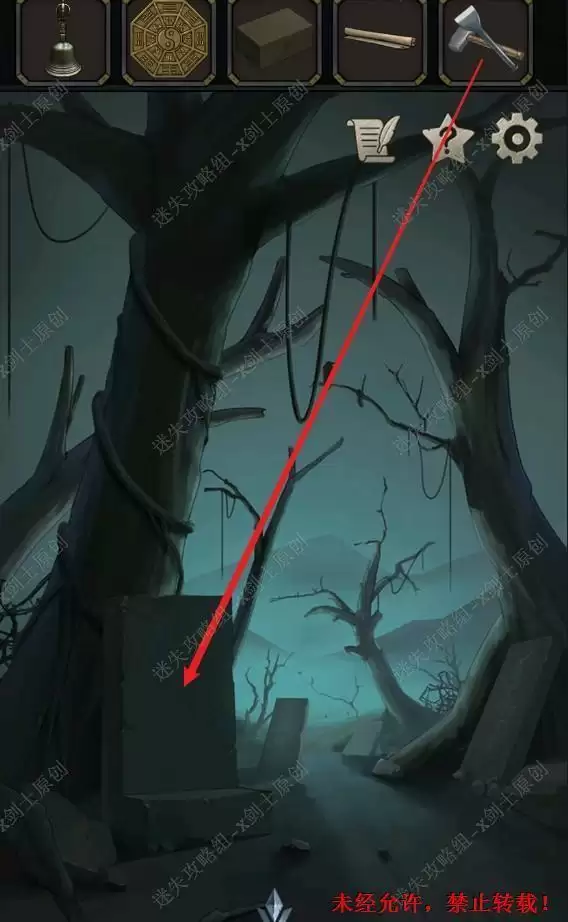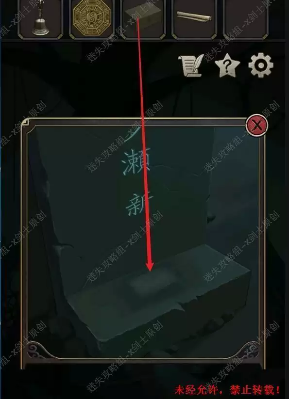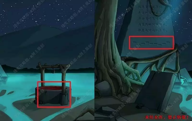 46.点击井口,获得提示。产看旁边的石碑,技术石碑上面的顺序,使用前面在地窖当中获得的木棰打开旁边的钟,打开整个井口的封印。46.1.2