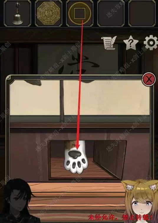 59.返回的时候可以随便在符上画些图案,封印妖怪,然后再次返回当铺,在猫又的当铺窗口处得到逝者的遗物。59
