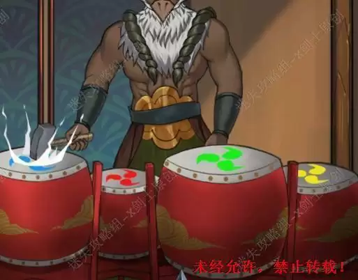 61.在一楼点击玩偶,可以从他们的脸上之后二楼打鼓的颜色提示绿蓝黄红,上到二楼,打完鼓之后就可以得到锤子了。61