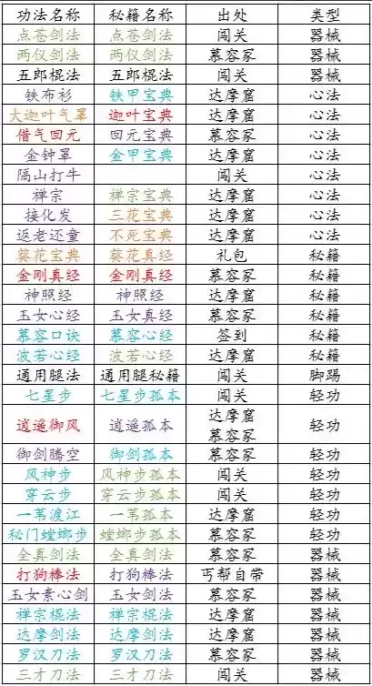 5 6 7.天元心法 化功大法 小无相功(都是红色) 三个都是心法类 反正都是古墓抽回来的