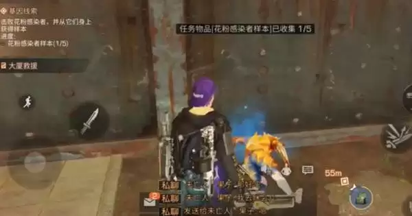 3、传送到任务地点,会出现花粉感染者,击败获得样本。