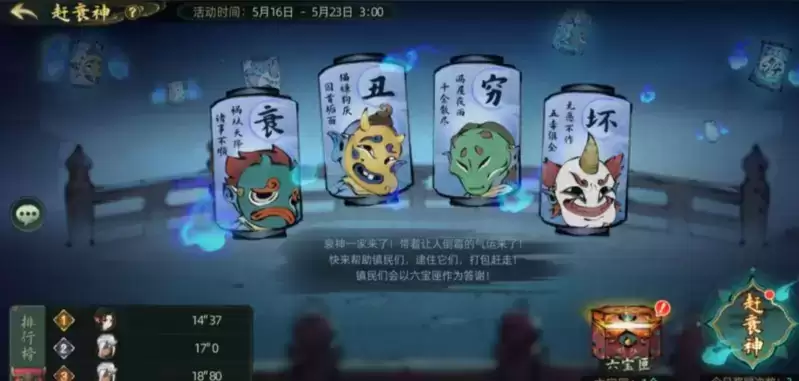 1.赶衰神活动每次开启后,会持续一周,每日前3次完成活动,可获得六宝匣和丰富奖励~