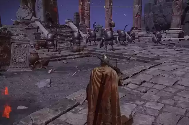 2、出来以后就可以看到广场上拿着武器的小怪