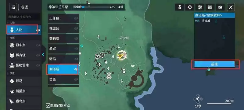 1、玩家们打开地图,然后点击人物,选择去往伽诺斯。