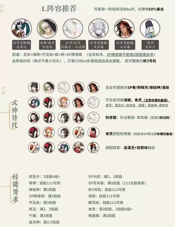 3.17~19点的逢魔boss跟日常逢魔一样,推荐挂机阵容:千缘丑刀灯、SP蛇篡位或其他日常逢魔阵容也可以