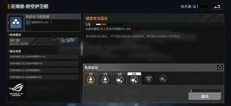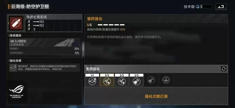 接下来就可以加点一下防空导弹系统,防空导弹系统的加点建议为:防空导弹伤害提升+主动技能。该系统的主动技能收益非常的高,它是每30秒作用一次然后提升40%的对空中单位命中率提升。