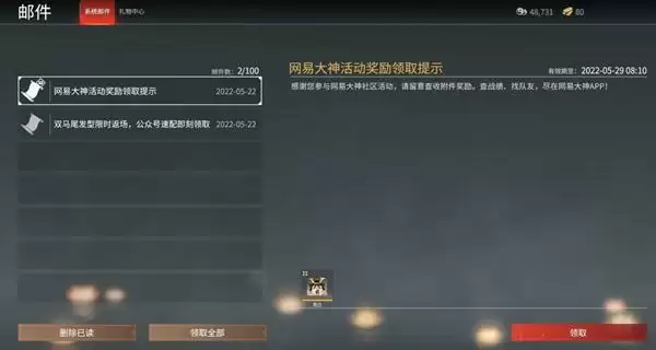 2、打开游戏,点击邮箱就能进入,然后点击领取。