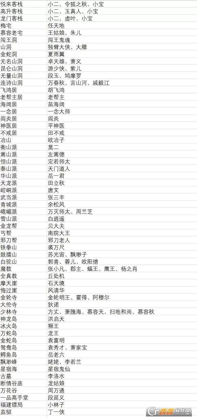 天龙线:岳老六~飘渺子~苏光宙~姥姥~游少贤~紫儿~朱儿~王姑娘~萧愧海~南院大王~方丈~扫地和尚~段延义~鸠摩罗~虚叶