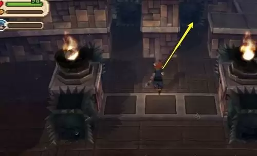 13、向上来到鬼火关卡,通过转动钥匙形状的石柱,改变鬼火的行动轨迹,使小鬼火在被点燃的火盆上飘过,变成大鬼火,大鬼火在没有点燃的火盆上飘过,可以点燃火盆,点燃关卡中所有没有被点燃的火盆,在第2个鬼火关卡中,需要将阻挡鬼火前进的瓦罐击碎。