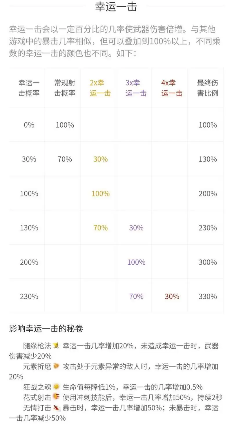 因为很吃幸运一击,所以天赋和秘籍全拿幸运一击有关的。(幸运一击图有相关秘籍)