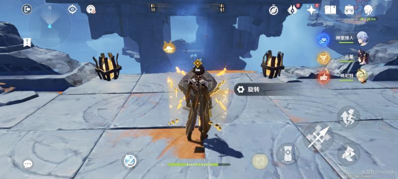1.进入秘境后,把视角转到右边,可以看到一个机关转一下,如下图会出现浮现的桥往前走