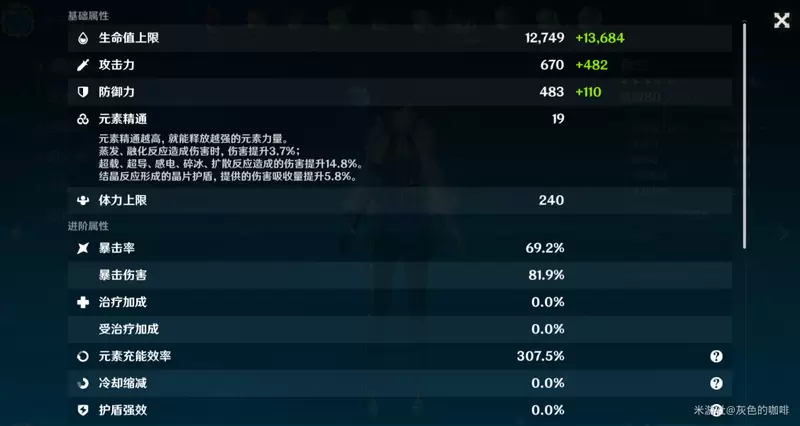 行秋:圣遗物绝缘4(充水暴)充能240左右,暴击60+,武器推荐精5祭礼剑