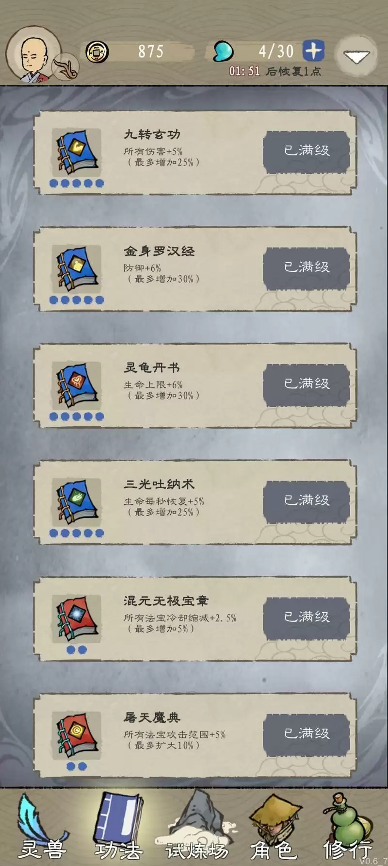 优先法宝任选三个优先升满,建议神魔装∶拂尘、扇子、雷符、诛仙、金刚符。