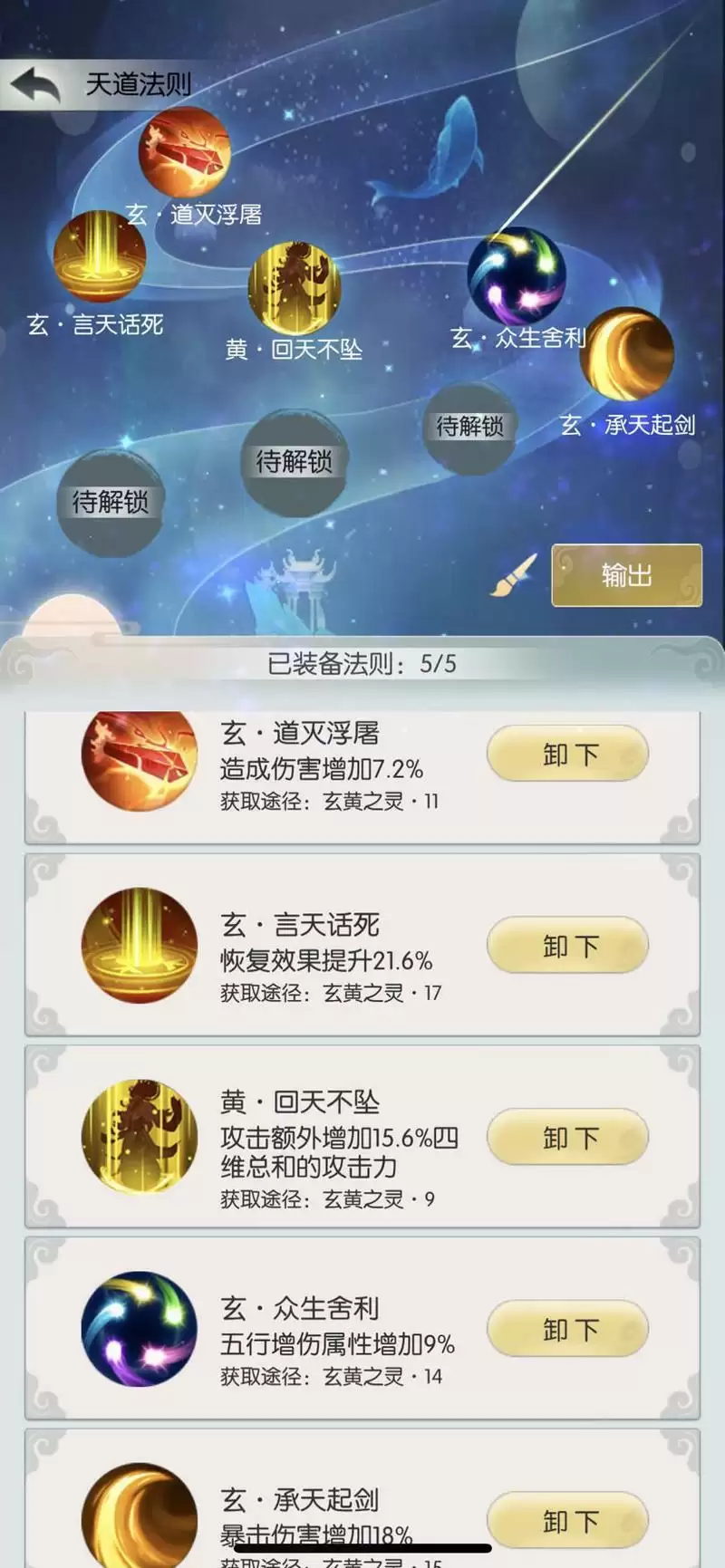 这里我第五兽技放了满级的会心3,没有会心3的用1或者2将就,没有会心就要求很高的主五属性了。