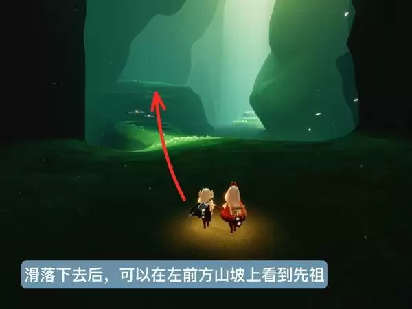 3、在草坪上找到红耳机先祖,再一路跟随到对面悬崖上。