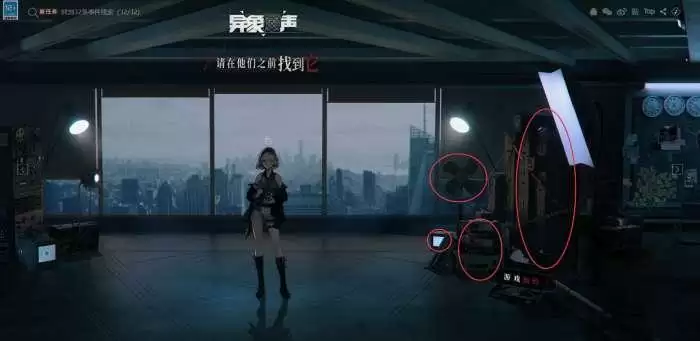 3、放映机边上飞速旋转的电扇,现在已经不工作了,点击它,会出现新的线索。