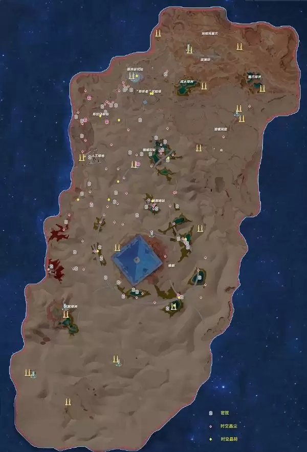 1.暗域晶石点位(图中只标记了解谜经常用到的绿色、紫色、h色晶石)【部分距离很近的同颜色晶石,图中只做一个标记】