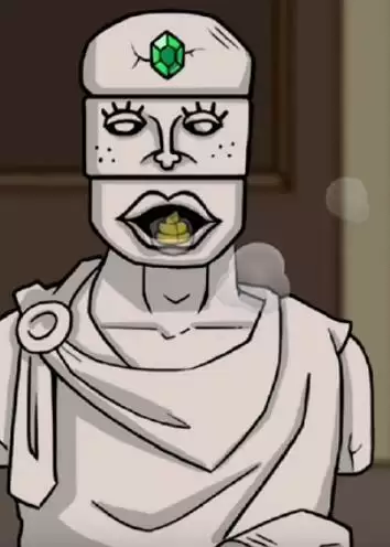 在次向右滑动a两下,b和c也两下,将绿色宝石拖动到石像的额头上,获取一坨h色的粑粑后,退出这个页面(左下角退出)