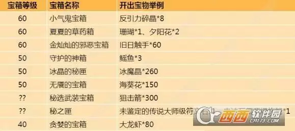 目前各种宝藏宝箱可以开出的东西各不一样,这里初略做了一些统计