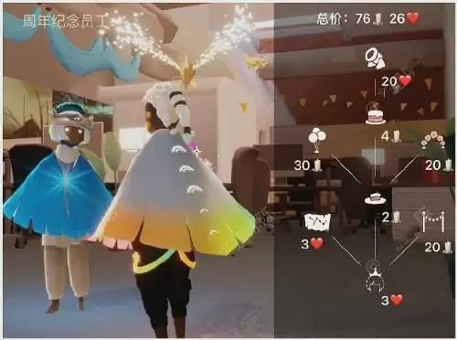 3、全部兑换完的话需要76个蜡烛和26个爱心,以上就是光遇周年庆2022兑换图最新一览了,希望可以帮到大家。