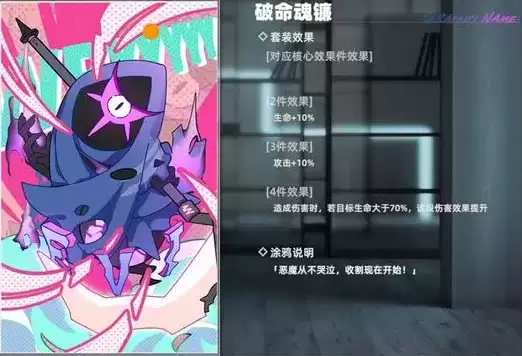 破命魂镰:造成伤害时,若目标生命值大于70%,该段伤害效果提升