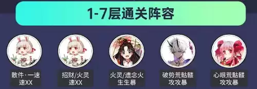 【1-7层】阵容搭配:拉条+增伤/治疗+双输出((打火),即可通过。
