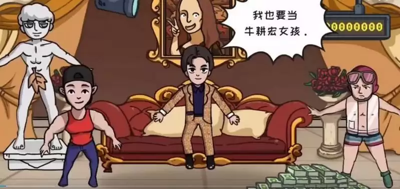 4、接着让画里的女孩出来做刘畊宏女孩,然后画框掉下来就把钱都花光了